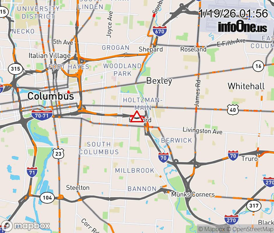 The outer lanes are blocked on I-70 East beyond Miller Ave/Kelton Ave, due to a crash. Updated: Mon 1/19/26 1:56 AM EST ![]() Updated: Mon 1/19/26 1:56 AM EST |