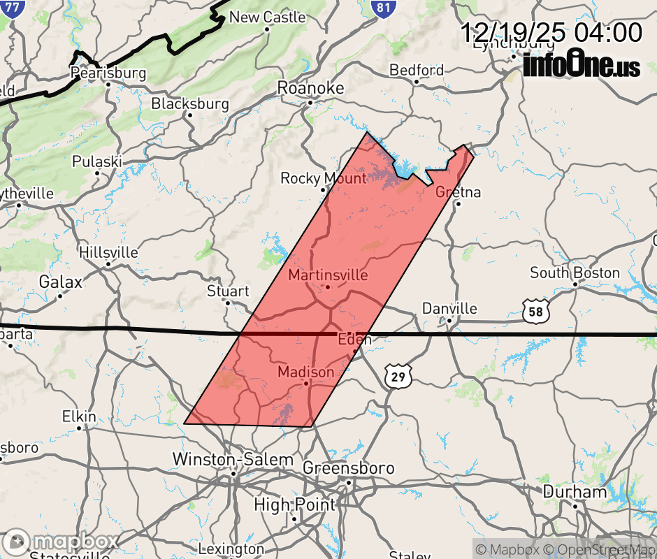 Canceled 12/19/25 4:45 AM Special Weather Statement issued December 19 at 3:59AM EST by NWS Blacksburg VA At 358 AM EST, Doppler radar was tracking heavy rain showers along a line extending from Moneta to King. Movement was east at 25 mph. HAZARD...Wind gusts up to 40 mph. SOURCE...Radar indicated. IMPACT...Gusty winds could knock down tree limbs and blow around unsecured objects. Locations impacted include... Eden... Martinsville... Mayodan... Madison... Walnut Cove... Hurt... and Stoneville. ![]() |