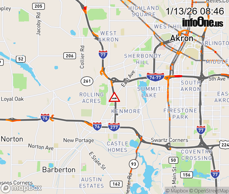 The right lane is blocked on I-76 West at Battles Ave/Kenmore Blvd, due to a disabled vehicle. Updated: Tue 1/13/26 8:46 AM EST ![]() Updated: Tue 1/13/26 8:46 AM EST |