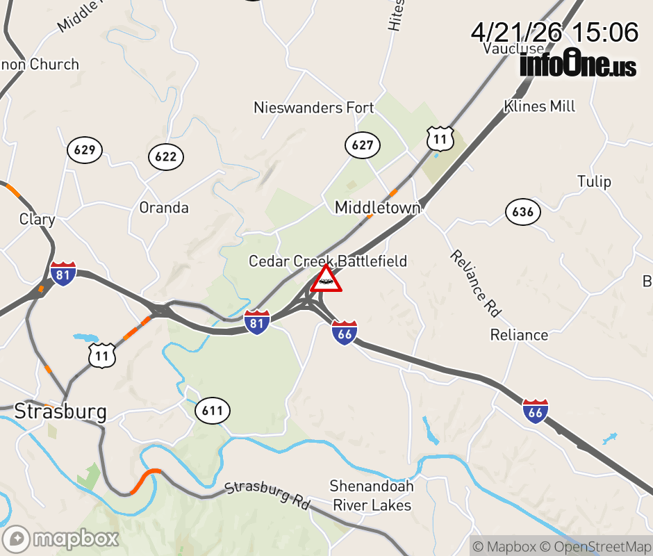 On I-81 at mile marker 300.8 in the County of Frederick, motorists can expect delays due to a vehicle crash. The north right shoulder is closed. ![]() |