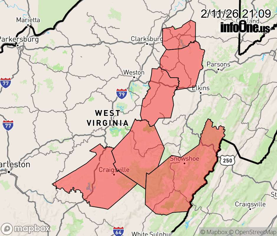 Canceled 2/12/26 3:00 AM Special Weather Statement issued February 11 at 9:08PM EST by NWS Charleston WV Light upslope snow showers are possible overnight into Thursday morning across portions of the area. A light coating up to one inch is possible in some locations. Brief reduced visibility and slick roadways could occur in some areas. If traveling, allow extra time to reach your destination. ![]() |