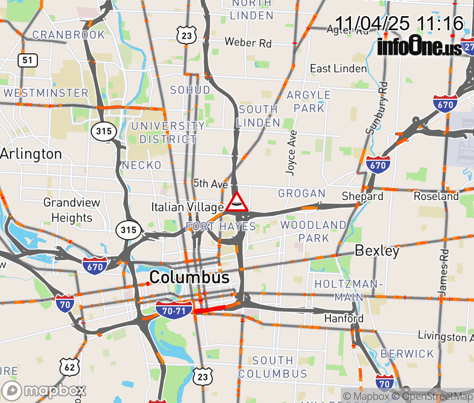 The left lane is blocked on I-71 North beyond I-670 West, due to a crash. ![]() |
