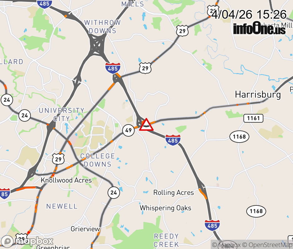 The right lane is closed near I-485. Updated: Sat 4/4/26 3:26 PM EDT ![]() Updated: Sat 4/4/26 3:26 PM EDT |