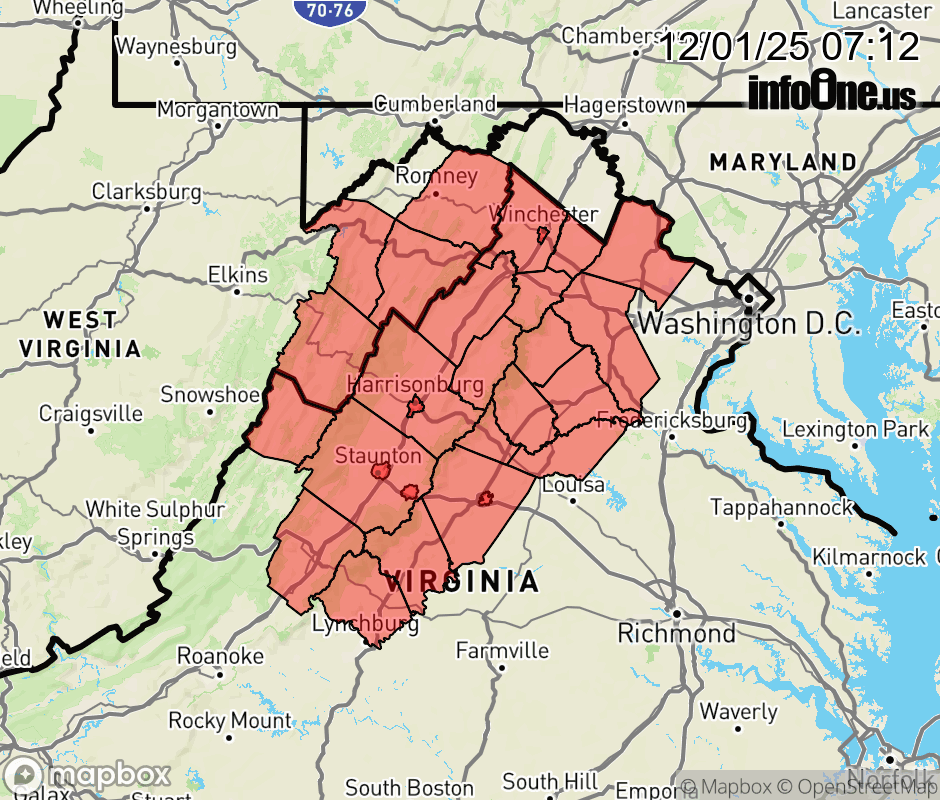 Canceled 12/1/25 9:32 AM Winter Weather Advisory issued December 1 at 7:11AM EST until December 2 at 12:00PM EST by NWS Baltimore MD/Washington DC ...FIRST WIDESPREAD WINTER EVENT OF THE SEASON... .Precipitation is expected to overspread the area after midnight tonight from southwest to northeast. While precipitation is likely to start as snow areawide, it is expected to mix with and change to sleet and freezing rain for most of the area. Locations along and south of US-50/I-66 likely end the event as rain as temperatures warm through the morning. Areas along the Mason-Dixon Line are most likely to remain all snow through the event, but that remains uncertain given exact low track. The Tuesday morning commute could be impacted for all areas in the Winter Weather Advisory. Updates to the forecast are likely, so please remain weather aware for the first widespread winter event of the season. * WHAT... Mixed precipitation expected, with a majority of the precipitation expected in the form of freezing rain. Total snow and sleet accumulations up to one inch and ice accumulations around one tenth of an inch, with upwards of two tenths of an inch possible on the higher ridges. * WHERE... Portions of central, northern, northwest, and western Virginia and eastern West Virginia. * WHEN... From 1 AM to noon EST Tuesday. * IMPACTS... Plan on slippery road conditions. The hazardous conditions could impact the Tuesday morning commute. * ADDITIONAL DETAILS... Precipitation is expected to overspread the area after midnight tonight. Precipitation is expected to start briefly as snow before mixing with and changing over to sleet and freezing rain. ![]() |