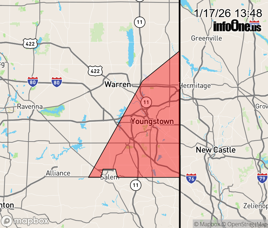 Canceled 1/17/26 2:15 PM Snow Squall Warning issued January 17 at 1:46PM EST until January 17 at 2:15PM EST by NWS Cleveland OH The National Weather Service in Cleveland has issued a * Snow Squall Warning for... Southeastern Trumbull County in northeastern Ohio... Mahoning County in northeastern Ohio... * Until 215 PM EST. * At 146 PM EST, a dangerous snow squall was located along a line extending from Vienna Center to near Salem, moving east at 25 mph. HAZARD...Intense bursts of heavy snow. Gusty winds leading to blowing snow and visibility rapidly falling to less than one-quarter mile. Wind gusts up to 35 mph. SOURCE...Radar indicated. IMPACT...Travel will become difficult and potentially dangerous within minutes. This will affect portions of I-80, I-76, I-680 and US 422. Locations impacted include... Youngstown, Salem, Columbiana, Boardman, Niles, Campbell, Hubbard, Canfield, Vienna Center, Hilltop, Maplewood Park, Austintown, Struthers, Girard, Vienna, McDonald, Poland, Ellsworth, New Middletown, and Lowellville. ![]() |