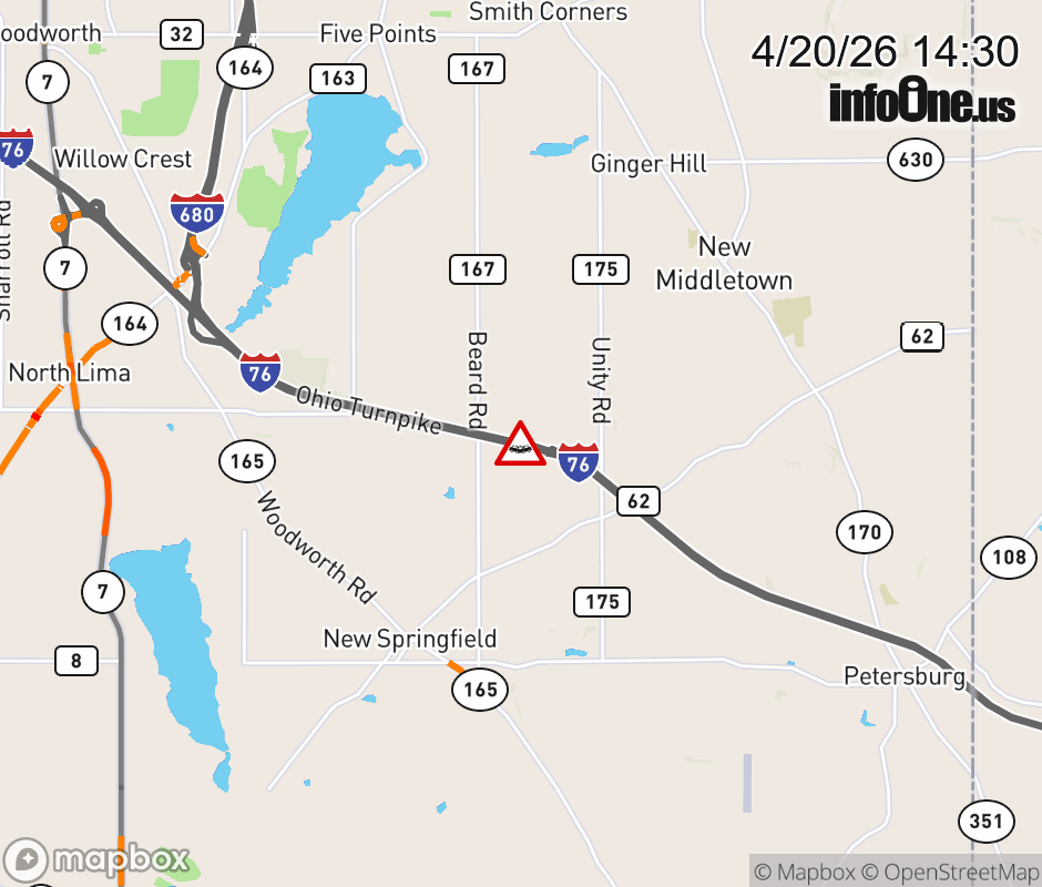 Expect lane closures on I-76 West (Ohio Turnpike) beyond State of Pennsylvania, due to a crash. ![]() |