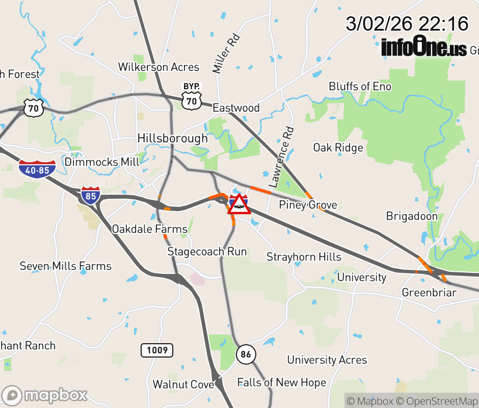 A lane is closed near Exit 165 (NC-86). ![]() |