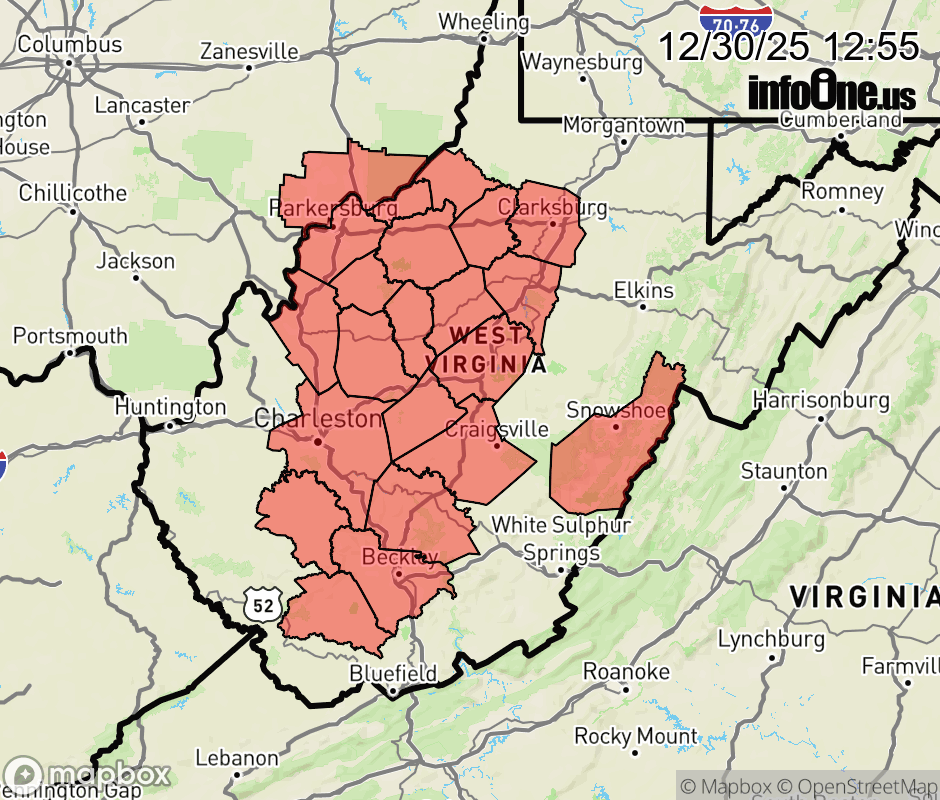 Canceled 12/30/25 8:35 PM Winter Weather Advisory issued December 30 at 12:54PM EST until January 1 at 10:00AM EST by NWS Charleston WV * WHAT... Snow expected. Total snow accumulations between 2 and 4 inches. * WHERE... Portions of southeast Ohio and central, northeast, northern, southeast, and southern West Virginia. * WHEN... From 4 PM Wednesday to 10 AM EST Thursday. * IMPACTS... Plan on slippery road conditions. The hazardous conditions could impact the Wednesday evening and Thursday morning commutes. ![]() |