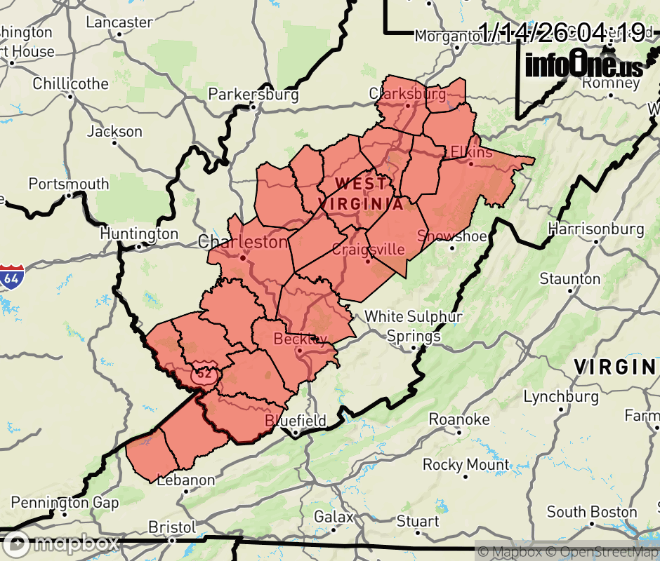 Canceled 1/14/26 2:30 PM Special Weather Statement issued January 14 at 4:18AM EST by NWS Charleston WV Snow showers are expected this evening and into Thursday at times, with up three inches possible across the higher elevations. Heavier snow showers could produce sudden visibility reductions. Additionally, gusty winds of 25 to 35 mph are possible, especially across the higher ridges. Those traveling this evening and overnight should be prepared for reduced visiblity and slick surfaces, especially across the higher terrain. Please allow for extra time to reach your destination. ![]() |