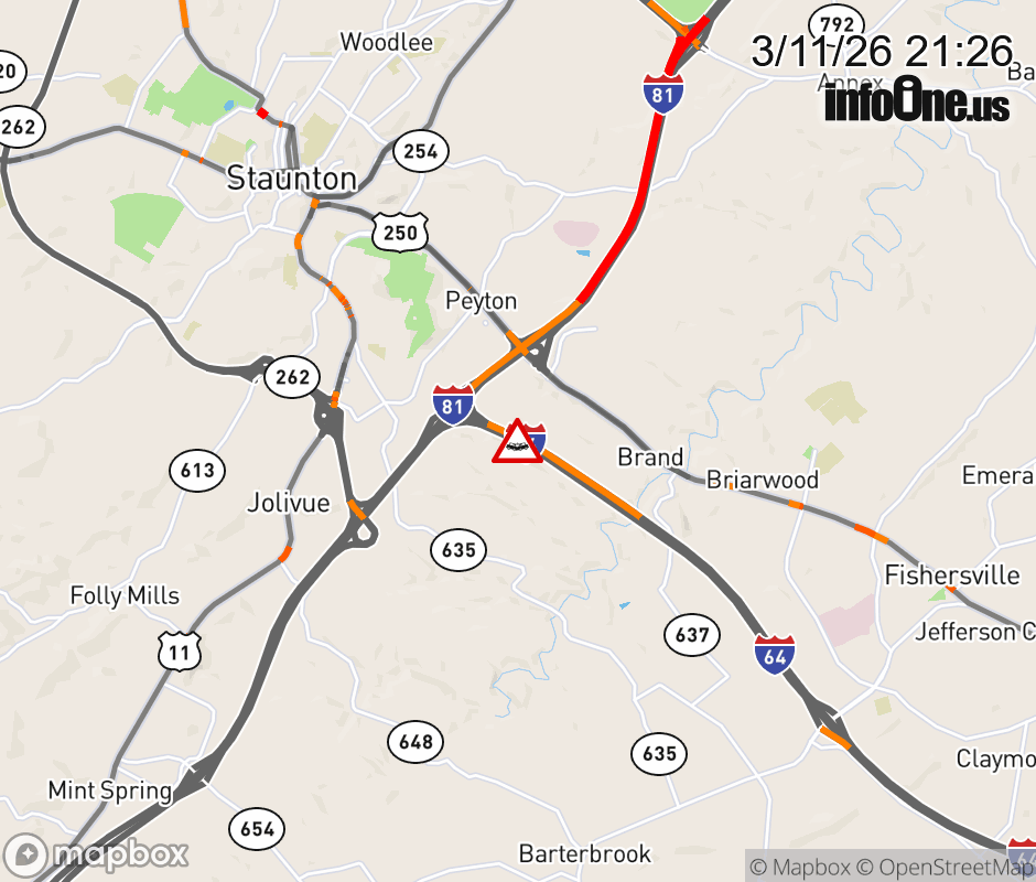 On I-64 at mile marker 88 in the County of Augusta, motorists can expect delays due to a vehicle crash. The east right shoulder is closed. ![]() |