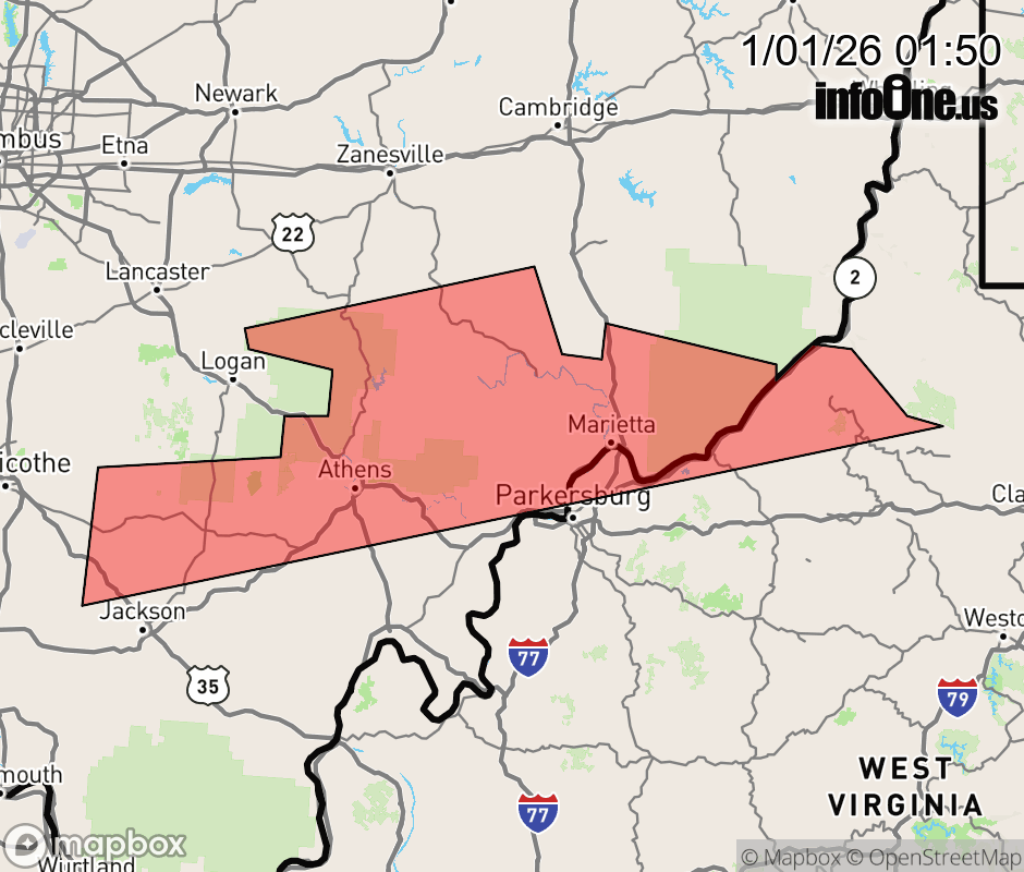Canceled 1/1/26 2:15 AM Special Weather Statement issued January 1 at 1:48AM EST by NWS Charleston WV At 141 AM EST, a line of intense snow showers was located along a line extending from near Greenfield to near Powhatan Point. Movement was southeast at 20 mph. This line will bring a quick burst of snow with wind gust to 35 mph and a quick drop in visibility. Light snow accumulations will cover roadways. As temperatures drop through 20s, slick conditions are expected to develop and remain through the overnight. Locations impacted include... Athens, Marietta, Belpre, Wellston, Nelsonville, St. Marys, Glouster, McConnelsville, Mcarthur, Beverly, Albany, Middlebourne, Shawnee, Chesterhill, Lake Hope State Park, Vienna, Williamstown, Paden City, Sistersville, and Belmont. This includes the following highways... Interstate 77 in West Virginia between mile markers 180 and 186. Interstate 77 in Ohio between mile markers 1 and 17. Conditions can deteriorate rapidly in winter weather situations. Be prepared for snow or ice covered roads. Slow down and allow extra time when traveling. ![]() |
