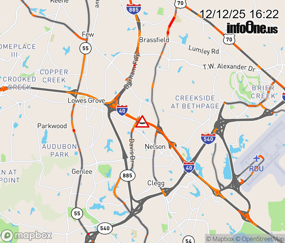 The right shoulder is closed near Exit 280 (Davis Dr). ![]() |
