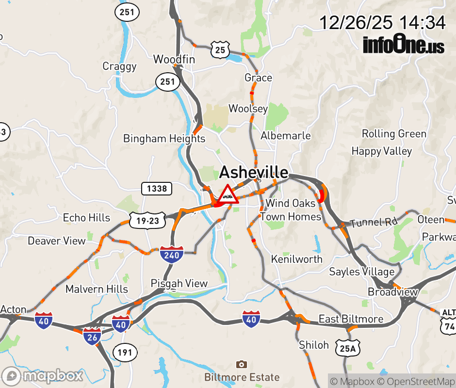 The right shoulder is closed after Exit 4B, Patton Avenue. Updated: Fri 12/26/25 2:34 PM EST ![]() Updated: Fri 12/26/25 2:34 PM EST |