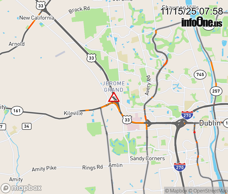 Ramp to SR-161 West/ Post Rd from US-33 East is closed due to repairs/maintenance. ![]() |