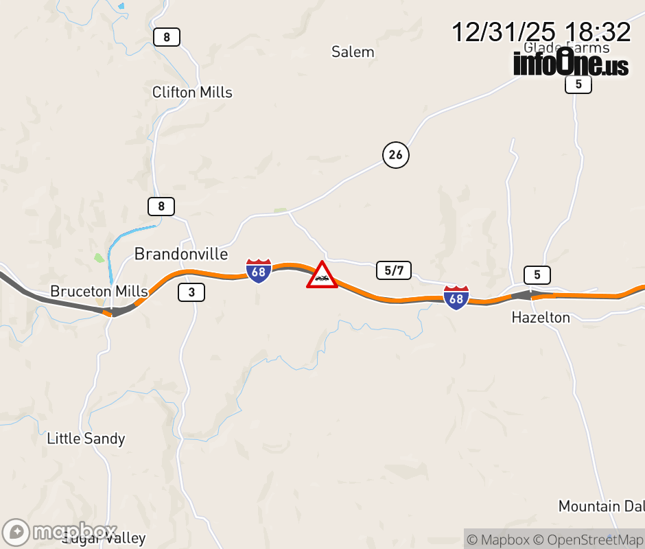 Disabled Vehicle on I-68W at Mile Marker 26.0. Updated: Wed 12/31/25 6:32 PM EST ![]() Updated: Wed 12/31/25 6:32 PM EST |