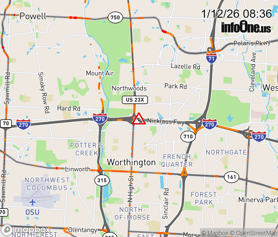 Expect lane closures on Ramp I-270 West to US-23 North (Northside), due to debris on roadway. ![]() |