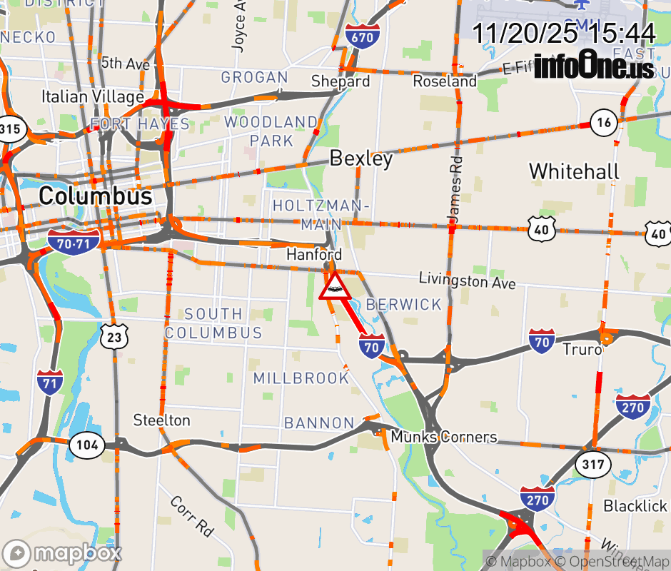 The 3 right lanes are blocked on I-70 West at US-33/Livingston Ave, due to a crash. Updated: Thu 11/20/25 3:44 PM EST ![]() |