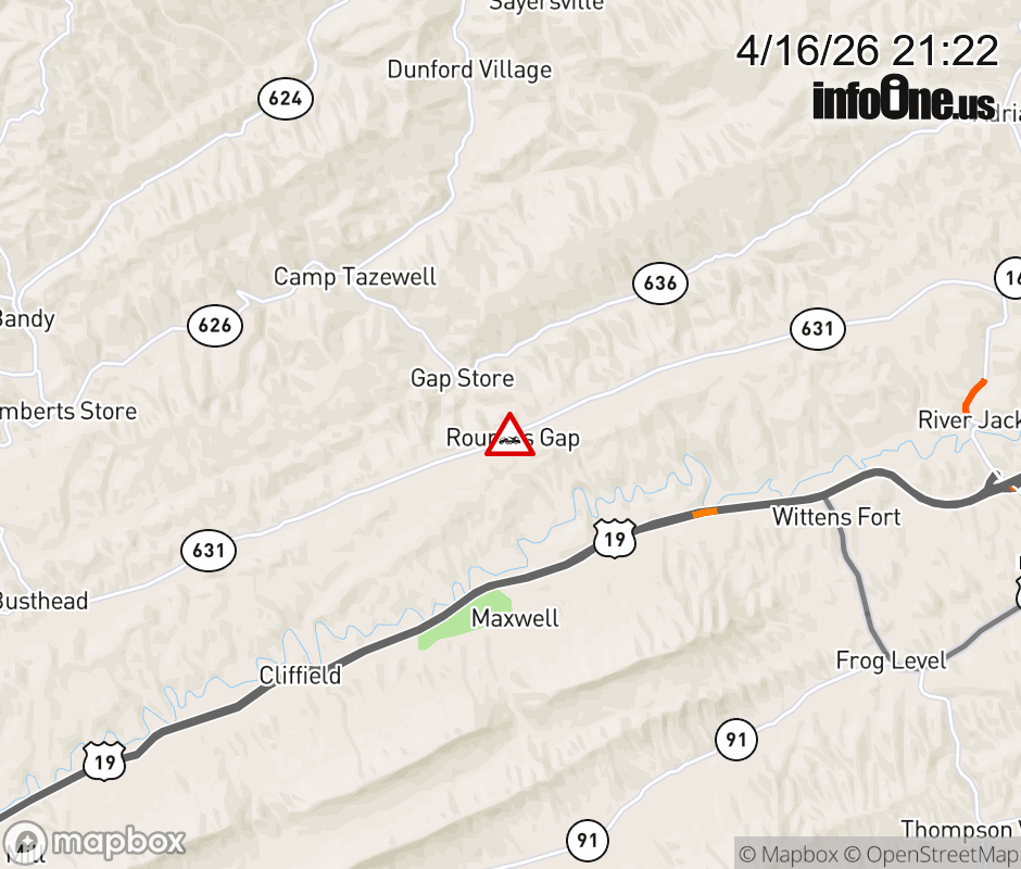 On Rt. 637 in the County of Tazewell, in the vicinity of Baptist Valley Rd; Rt. 631E/W (Tazewell County), motorists can expect delays due to a disabled tractor trailer. All north lanes are closed. All south lanes are closed. Updated: Thu 4/16/26 9:22 PM EDT ![]() Updated: Thu 4/16/26 9:22 PM EDT |