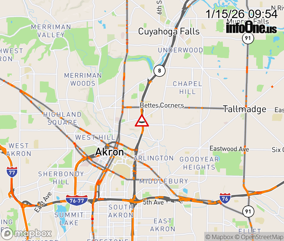 The left lane is blocked on SR-8 South/SR-59 West beyond SR-261/Tallmadge Ave, due to a crash. ![]() |