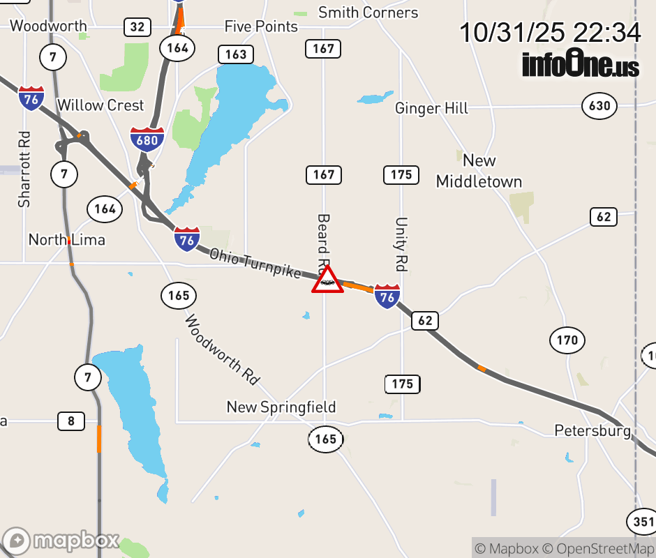Expect lane closures on I-76 West (Ohio Turnpike) beyond State of Pennsylvania, due to a crash. Updated: Fri 10/31/25 10:34 PM EDT ![]() |