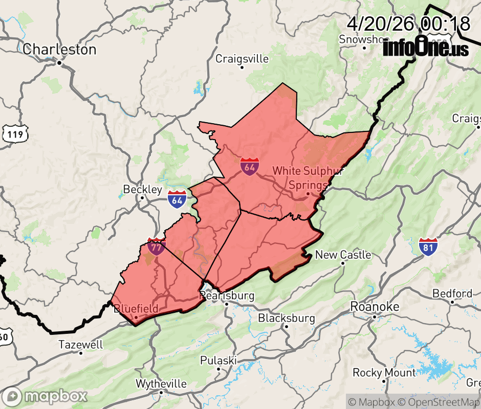 Canceled 4/20/26 7:59 AM Freeze Warning issued April 20 at 12:15AM EDT until April 21 at 9:00AM EDT by NWS Blacksburg VA * WHAT... For the Frost Advisory, temperatures as low as 34 will result in frost formation. For the Freeze Warning, sub-freezing temperatures as low as 26 expected. * WHERE... Eastern Greenbrier, Mercer, Monroe, and Summers Counties. * WHEN... For the Frost Advisory, until 10 AM EDT this morning. For the Freeze Warning, from midnight tonight to 9 AM EDT Tuesday. * IMPACTS... Frost and freeze conditions could kill crops, other sensitive vegetation and possibly damage unprotected outdoor plumbing. Frost could harm sensitive outdoor vegetation. Sensitive outdoor plants may be killed if left uncovered. ![]() |