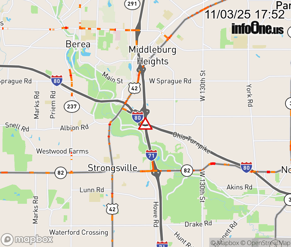 Expect lane closures on I-80 West (Ohio Turnpike) at I-71, due to a crash. ![]() |
