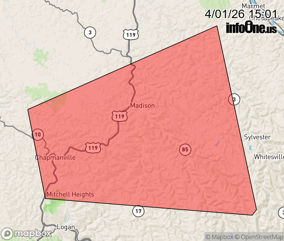 Canceled 4/1/26 3:30 PM Severe Thunderstorm Warning issued April 1 at 3:00PM EDT until April 1 at 3:30PM EDT by NWS Charleston WV SVRRLX The National Weather Service in Charleston West Virginia has issued a * Severe Thunderstorm Warning for... South central Lincoln County in central West Virginia... North central Logan County in southern West Virginia... Boone County in central West Virginia... * Until 330 PM EDT. * At 259 PM EDT, a severe thunderstorm was located near Chapmanville, or 7 miles southwest of Madison, moving east at 30 mph. HAZARD...60 mph wind gusts and quarter size hail. SOURCE...Radar indicated. IMPACT...Hail damage to vehicles is expected. Expect wind damage to roofs, siding, and trees. * Locations impacted include... Madison, Chapmanville, Van, Wharton, Danville, Mitchell Heights, Seth, Turtle Creek, Prenter, Ashford, Foster, Sharples, Racine, and Jeffrey. This includes Route 119 between mile markers 31 and 56. ![]() |