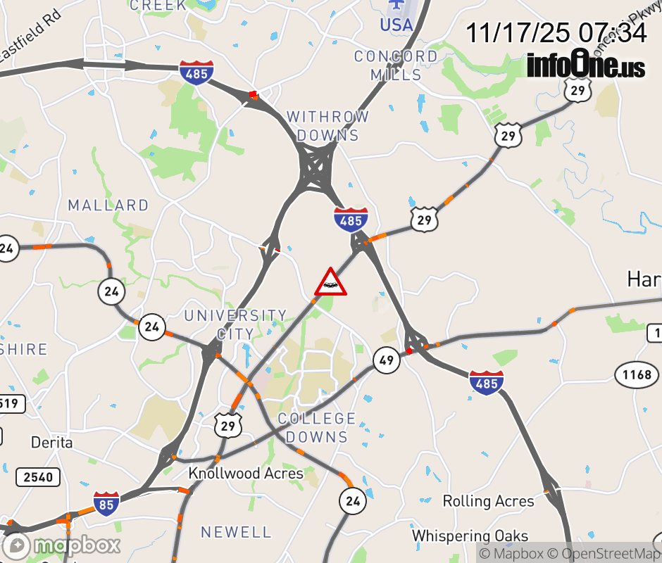 The left lanes are closed in both directions near Mallard Creek Church Rd. ![]() |