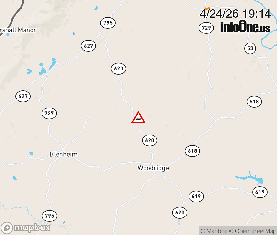 On Rt. 620 North in the County of Albemarle, in the vicinity of Ed Jones Rd; Rt. 728E/W (Albemarle County), motorists can expect delays due to a vehicle crash. Updated: Fri 4/24/26 7:14 PM EDT ![]() Updated: Fri 4/24/26 7:14 PM EDT |