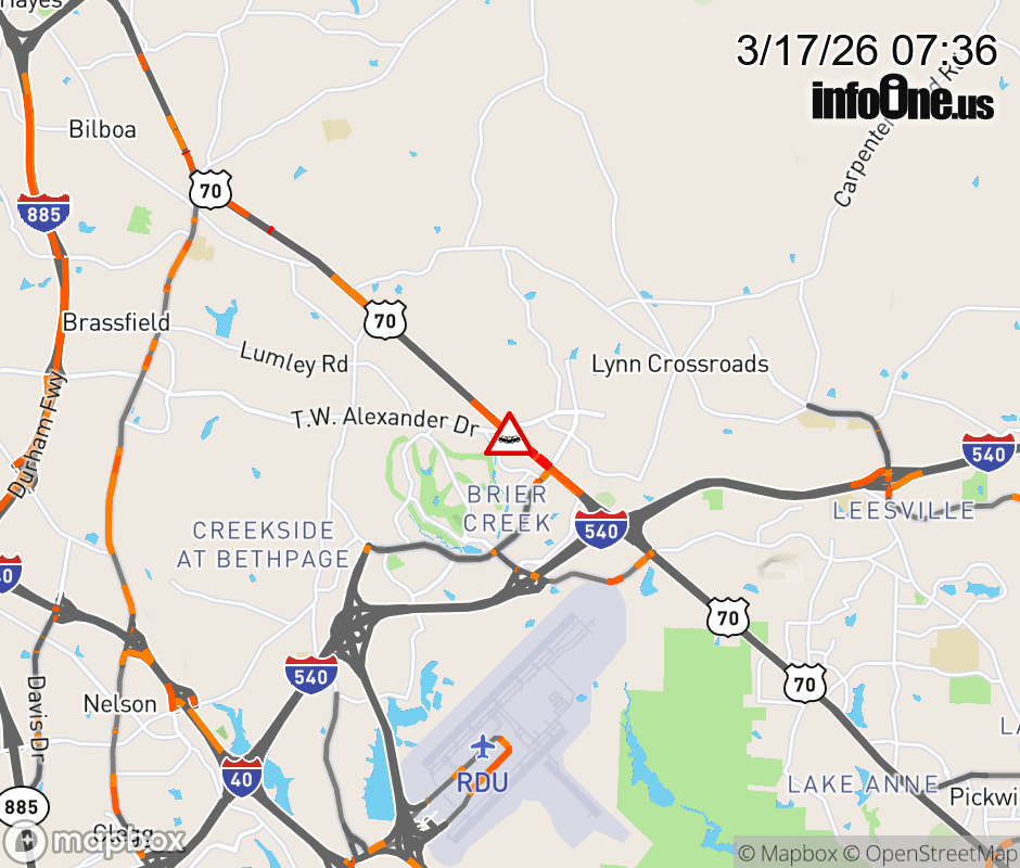 The right lane is closed at T.W Alexander Dr. ![]() |