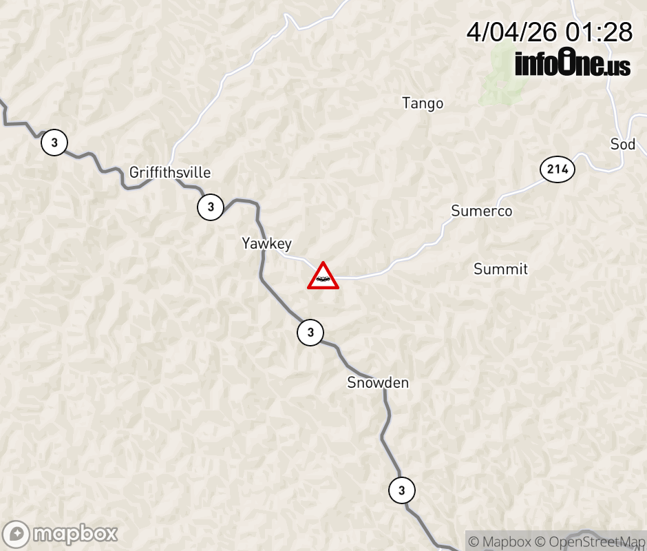 Vehicle Crash on WV 214 (4713 Midway Rd, Yawkey). The northbound road is closed. The southbound road is closed. ![]() |