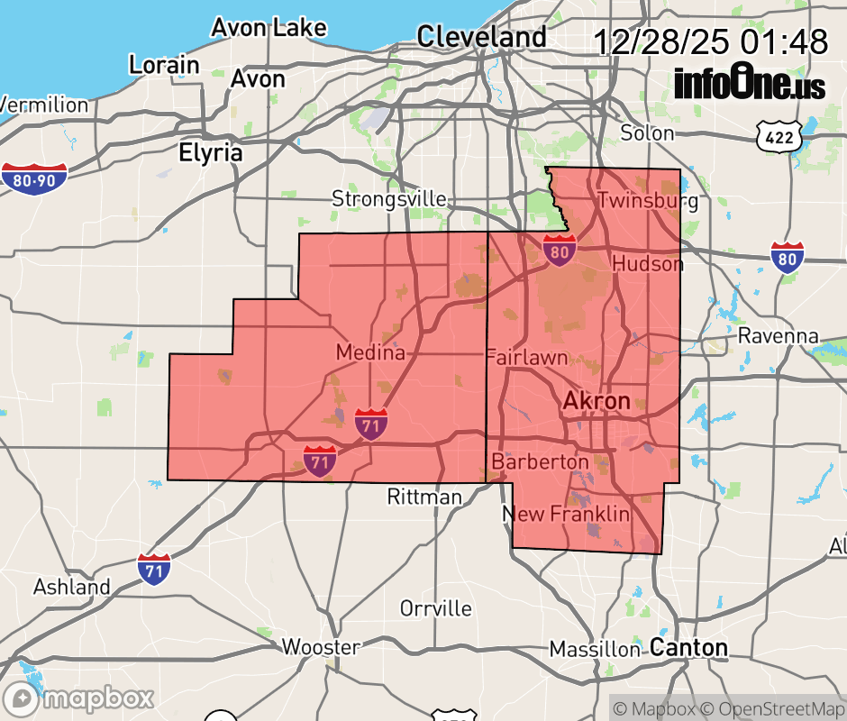 Canceled 12/28/25 1:55 AM Wind Advisory issued December 28 at 1:47AM EST until December 30 at 1:00AM EST by NWS Cleveland OH * WHAT... West winds 20 to 30 mph with gusts up to 55 mph expected. * WHERE... Medina and Summit Counties. * WHEN... From 4 AM Monday to 1 AM EST Tuesday. * IMPACTS... Gusty winds will blow around unsecured objects. Tree limbs could be blown down and a few power outages may result. ![]() |
