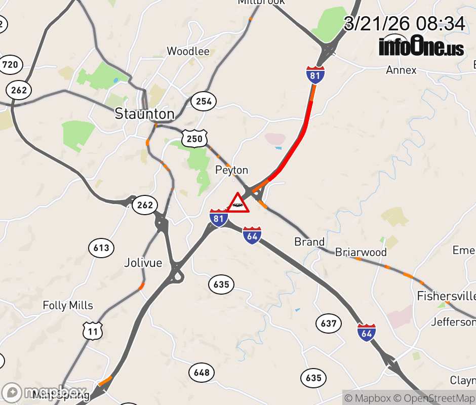 On I-81 at mile marker 222.3 in the County of Augusta, motorists can expect delays due to a vehicle crash. The north right shoulder is closed. ![]() |