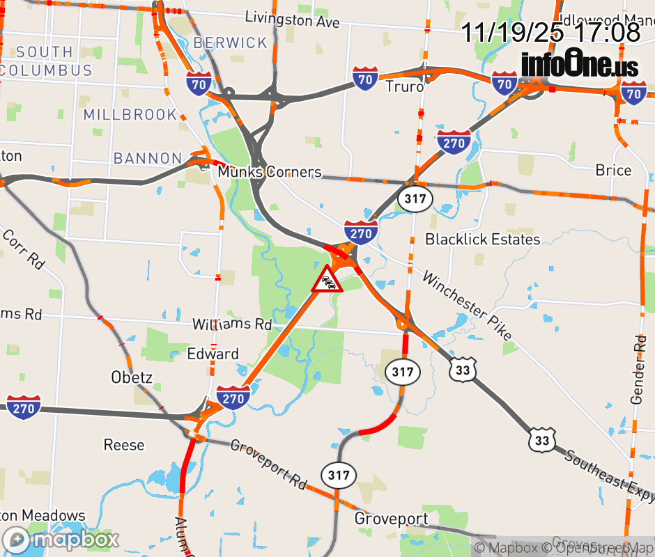 The right lane is blocked on I-270 North at US-33, due to an other incident. Updated: Wed 11/19/25 5:08 PM EST ![]() |