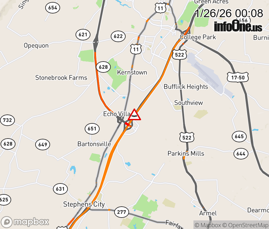 On I-81 at mile marker 310.5 in the County of Frederick, motorists can expect delays due to a vehicle crash. The south right lane and right shoulder are closed. Updated: Mon 1/26/26 12:08 AM EST ![]() Updated: Mon 1/26/26 12:08 AM EST |
