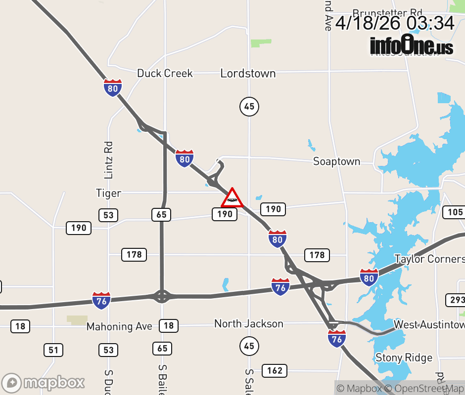 Expect lane closures on I-80 West (Ohio Turnpike) beyond I-76, due to a crash. ![]() |