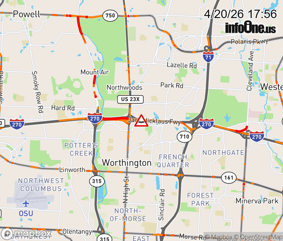 The right lane is blocked on I-270 East beyond US-23, due to a crash. ![]() |