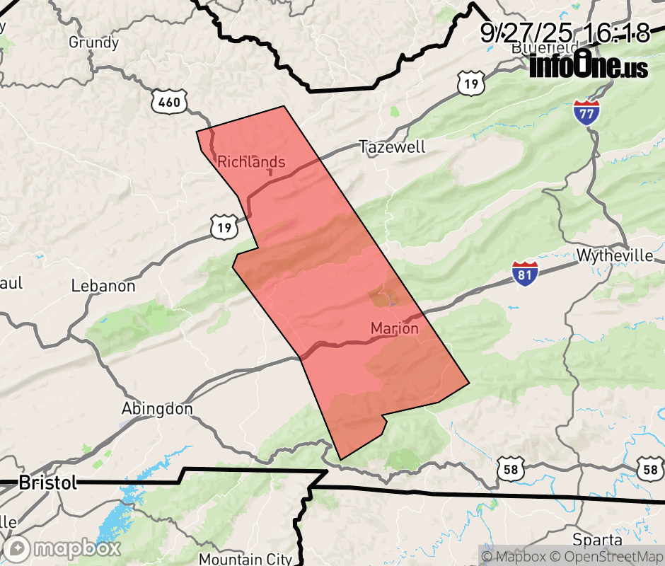 Canceled 9/27/25 7:15 PM Flood Advisory issued September 27 at 4:16PM EDT until September 27 at 7:15PM EDT by NWS Blacksburg VA * WHAT... Flooding caused by excessive rainfall is expected. * WHERE... A portion of southwest Virginia, including the following counties, Smyth and Tazewell. * WHEN... Until 715 PM EDT. * IMPACTS... Minor flooding in low-lying and poor drainage areas. * ADDITIONAL DETAILS... - At 416 PM EDT, Doppler radar indicated heavy rain due to thunderstorms. Minor flooding is ongoing or expected to begin shortly in the advisory area. Between 1 and 2 inches of rain have fallen. - This includes the following streams and drainages... Big Creek, Clinch River, Crewey Branch, Comers Creek, Deans Branch, Campbell Creek, Deskin Creek, Dickey Creek, East Fork Hopkins Branch, Coal Creek, Georges Branch and Beaver Creek. Additional rainfall amounts up to 1 inch are expected over the area. This additional rain will result in minor flooding. - Some locations that will experience flooding include... Marion... Richlands... Saltville... Chilhowie... Cedar Bluff... Mount Rogers National Recreation Area... Sugar Grove... - http://www.weather.gov/safety/flood ![]() |