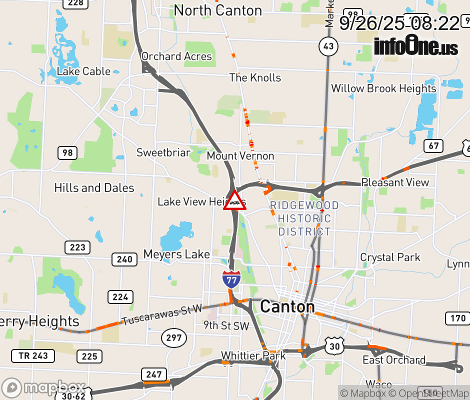 The right shoulder is blocked on Ramp I-77 North/US-62 East to US-62 East, due to a disabled vehicle. ![]() |