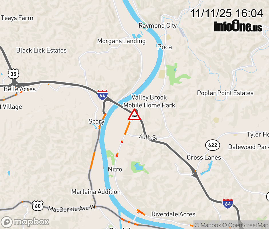 Vehicle Crash on I-64W at Mile Marker 44.5. Comments:Nitro Exit Ramp / WV-25 (1st Ave).Comments:Nitro Exit Ramp / WV-25 (1st Ave) ![]() |