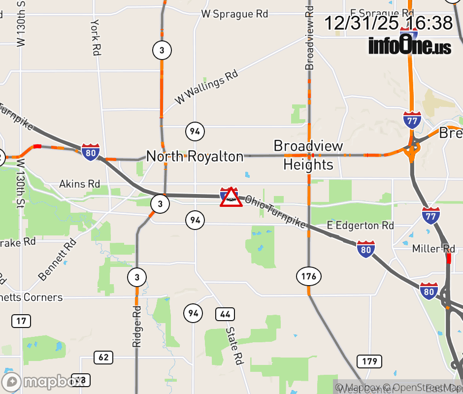 Expect lane closures on I-80 East (Ohio Turnpike) beyond I-71, due to a crash. ![]() |