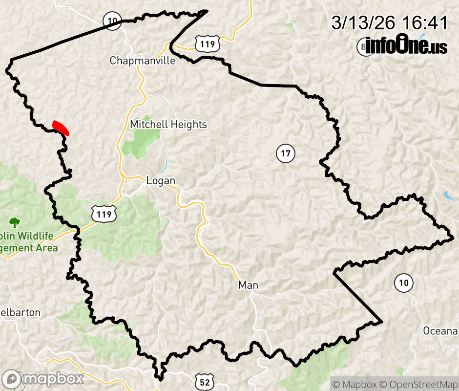 Canceled 3/13/26 6:41 PM Logan County has 1 power outage affecting 34 customers. Appalachian Power 34 without power Updated: Fri 3/13/26 4:11 PM EDT ![]() Updated: Fri 3/13/26 4:41 PM EDT |
