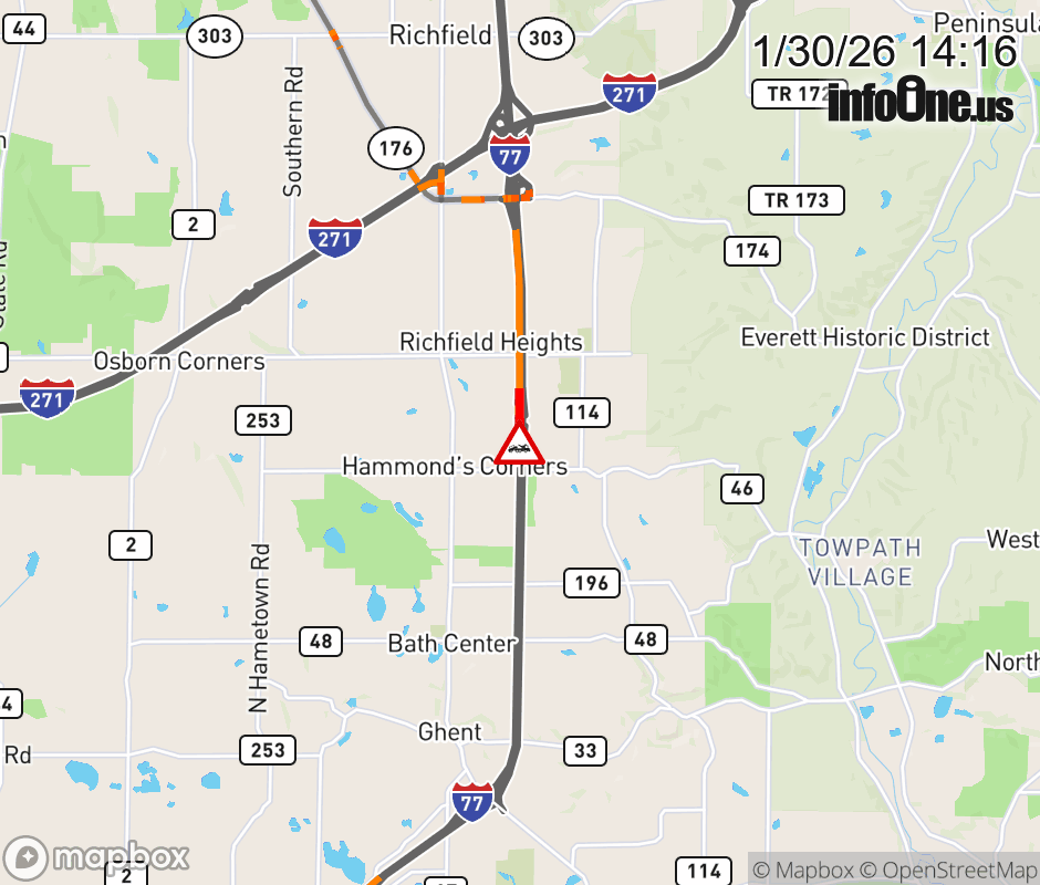 The right lane is blocked on I-77 South beyond Summit County Rest Area 4-32, due to a disabled vehicle. ![]() |