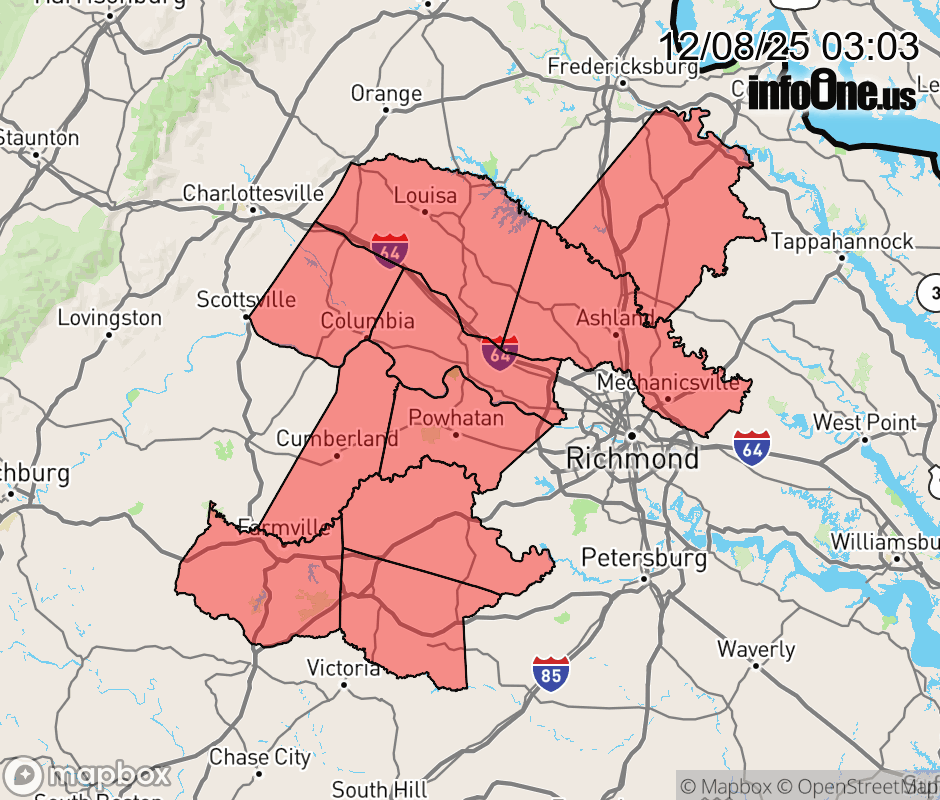 Canceled 12/8/25 4:57 AM Freezing Fog Advisory issued December 8 at 3:01AM EST until December 8 at 6:00AM EST by NWS Wakefield VA * WHAT... Visibility one quarter mile or less in freezing fog. * WHERE... Portions of central, north central, and south central Virginia. * WHEN... Until 6 AM EST early this morning. * IMPACTS... Low visibility could make driving conditions hazardous. ![]() |