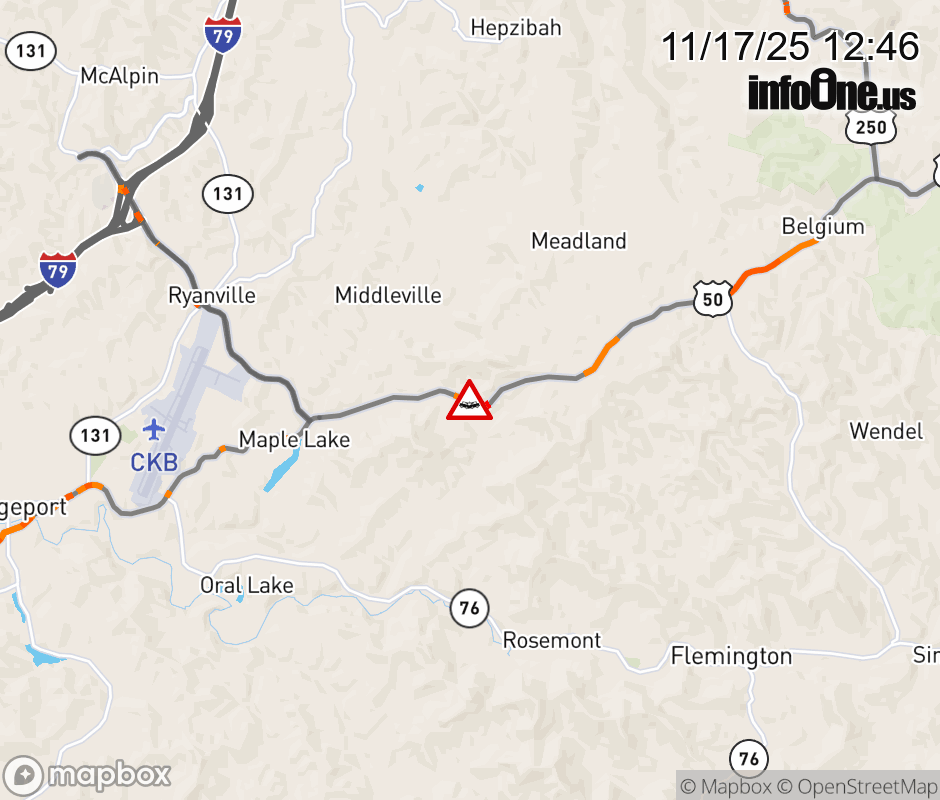 Vehicle Crash on US-50 (8700 Blk G.W.Hwy near Lamberts Hollow). The southbound road is closed. Updated: Mon 11/17/25 12:46 PM EST ![]() Updated: Mon 11/17/25 12:46 PM EST |