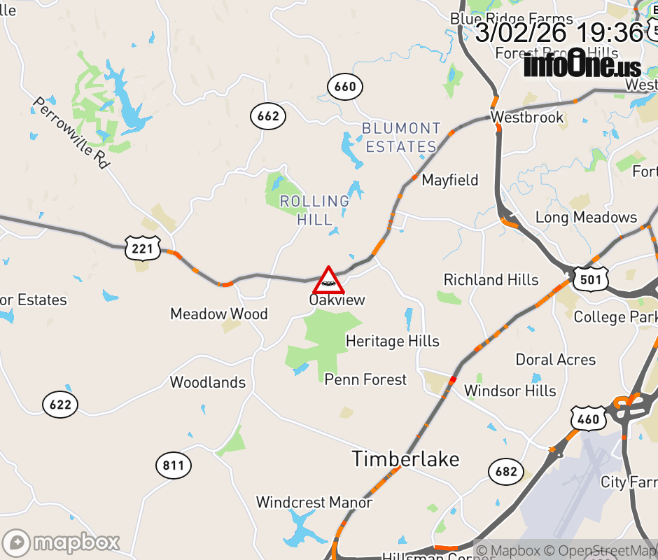 On Rt. 620 North in the County of Bedford, in the vicinity of Forest Rd; US-221N/S, motorists can expect delays due to a vehicle crash. Lane closures exist. Updated: Mon 3/2/26 7:36 PM EST ![]() Updated: Mon 3/2/26 7:36 PM EST |