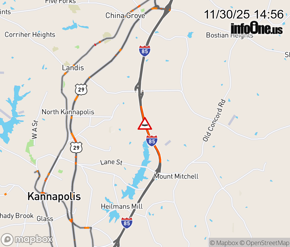 The left lane is closed 1 mile before Exit 65 (Old Beatty Ford Rd). ![]() Updated: Sun 11/30/25 2:56 PM EST |