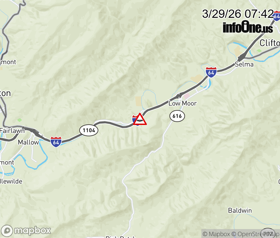 On I-64 at mile marker 20.2 in the County of Alleghany, motorists can expect delays due to a vehicle crash. The east right lane and right shoulder are closed. ![]() |
