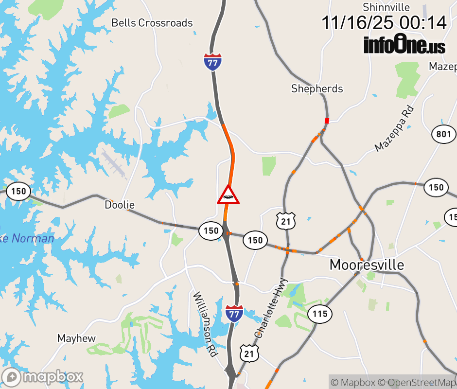 The road is closed past Exit 36 (NC 150). Updated: Sun 11/16/25 12:14 AM EST ![]() Updated: Sun 11/16/25 12:14 AM EST |