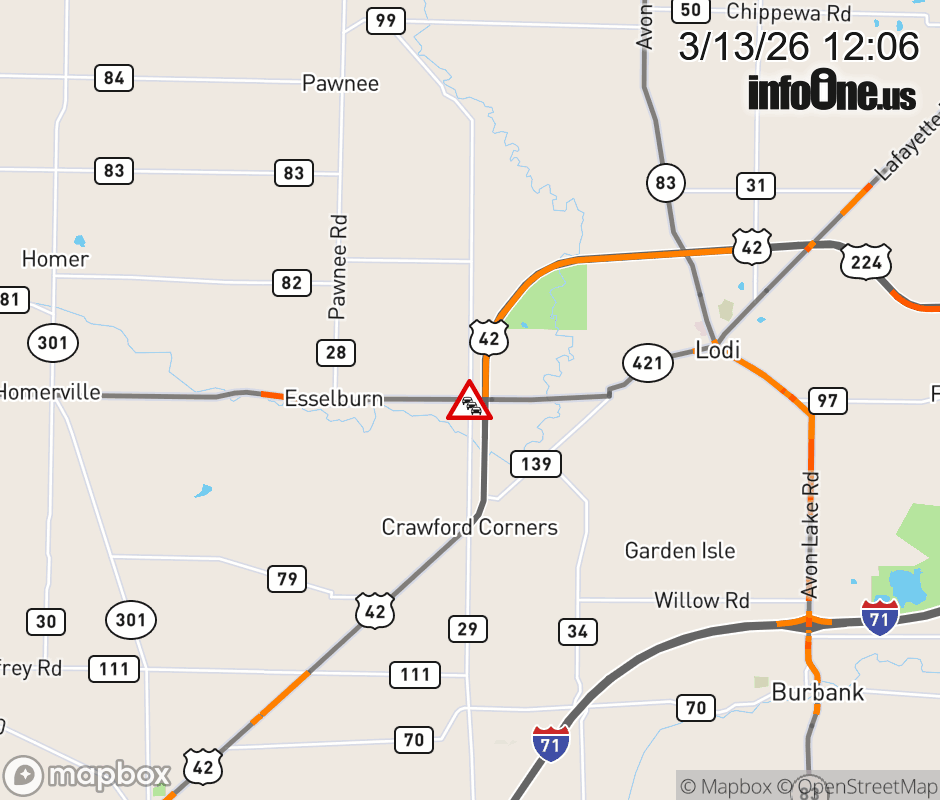 US-224 CLOSED in BOTH DIRECTIONS at Congress Rd (MM: 6.2), due to utility emergency other incident. Use alternate route. US-224 CLOSED in BOTH DIRECTIONS at Congress Rd (MM: 6.2), due to utility emergency other incident. Use alternate route. Updated: Fri 3/13/26 12:06 PM EDT ![]() Updated: Fri 3/13/26 12:06 PM EDT |